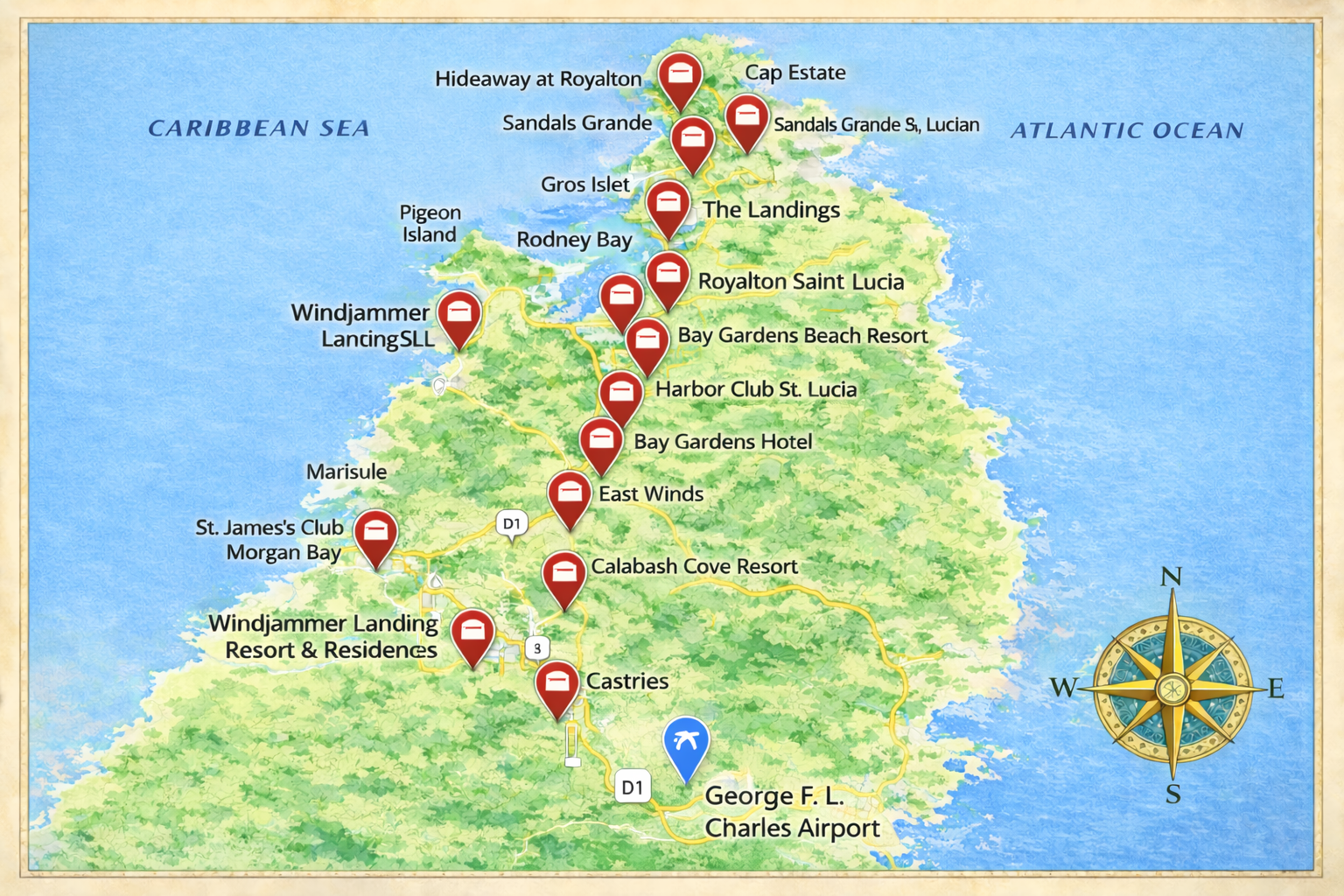 Transfer from Hewanorra International Airport at Vieux Fort, St. Lucia
